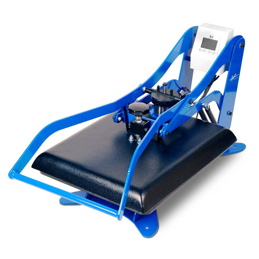Our mid-sized clamshell heat press, the 14×16 DK16 opens for full access to the lower bottom table. This press is the lowest cost solution for a business grade heavy-duty Digital heat press machine. It is important to note that the back of the heat platen raises above and away the bottom table, providing better access than other clamshell presses. The frame support allows operators to slide shirts over the table with complete drape space around and underneath the loading area. Interchangeable bottom tables for smaller pressing areas are available. This clamshell heat press is idea for environments with space limitations, and for users who need more portability and mobility than the over-weight swing away presses.