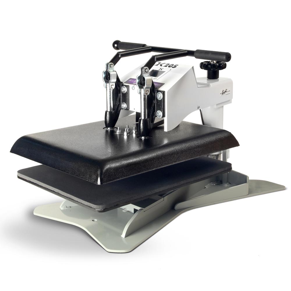 The Digital Geo Knight DK20S is our ‘flagship’ 16×20 swing-away heat transfer press. The DK20S combines a heavy-duty solid steel industrial grade pressing framework with accurate and easy to use electronics to provide the operator with the best possible features and equipment needed for today’s various heat transfer applications.